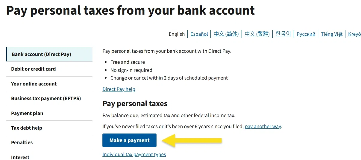 1. Go to: https://www.irs.gov/payments/direct-pay